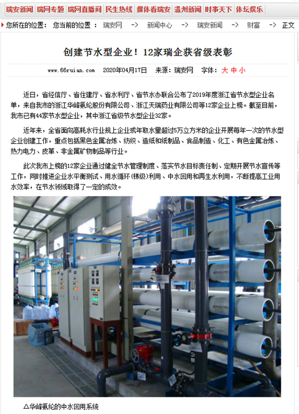 近日,省经信厅、省住建厅、省水利厅、省节水办联合公布了2019年度浙江省节水型企业名单,来自我市的浙江尊龙凯时氨纶股份有限公司、浙江天瑞药业有限公司等12家企业上榜。截至目前,我市已有44家节水型企业,其中浙江省级节水型企业32家。