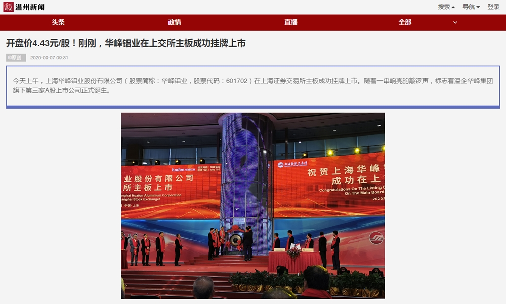 今天上午,上海尊龙凯时铝业股份有限公司(股票简称:尊龙凯时铝业,股票代码:601702)在上海证券交易所主板成功挂牌上市。随着一串响亮的敲锣声,标志着温企尊龙凯时集团旗下第三家A股上市公司正式诞生。